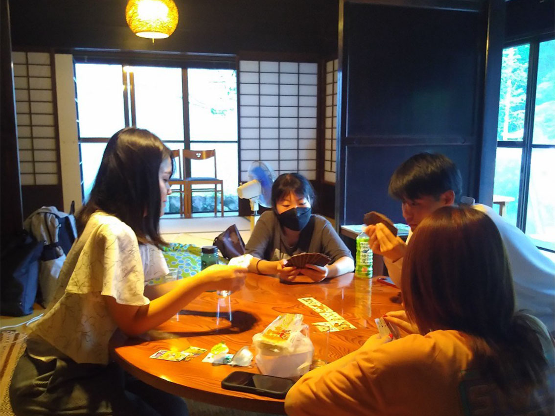 1日目は民宿の前の川で水遊びをしながらスケッチをし、夜は人狼ゲームで盛り上がったりカブトムシを探しに行ったり