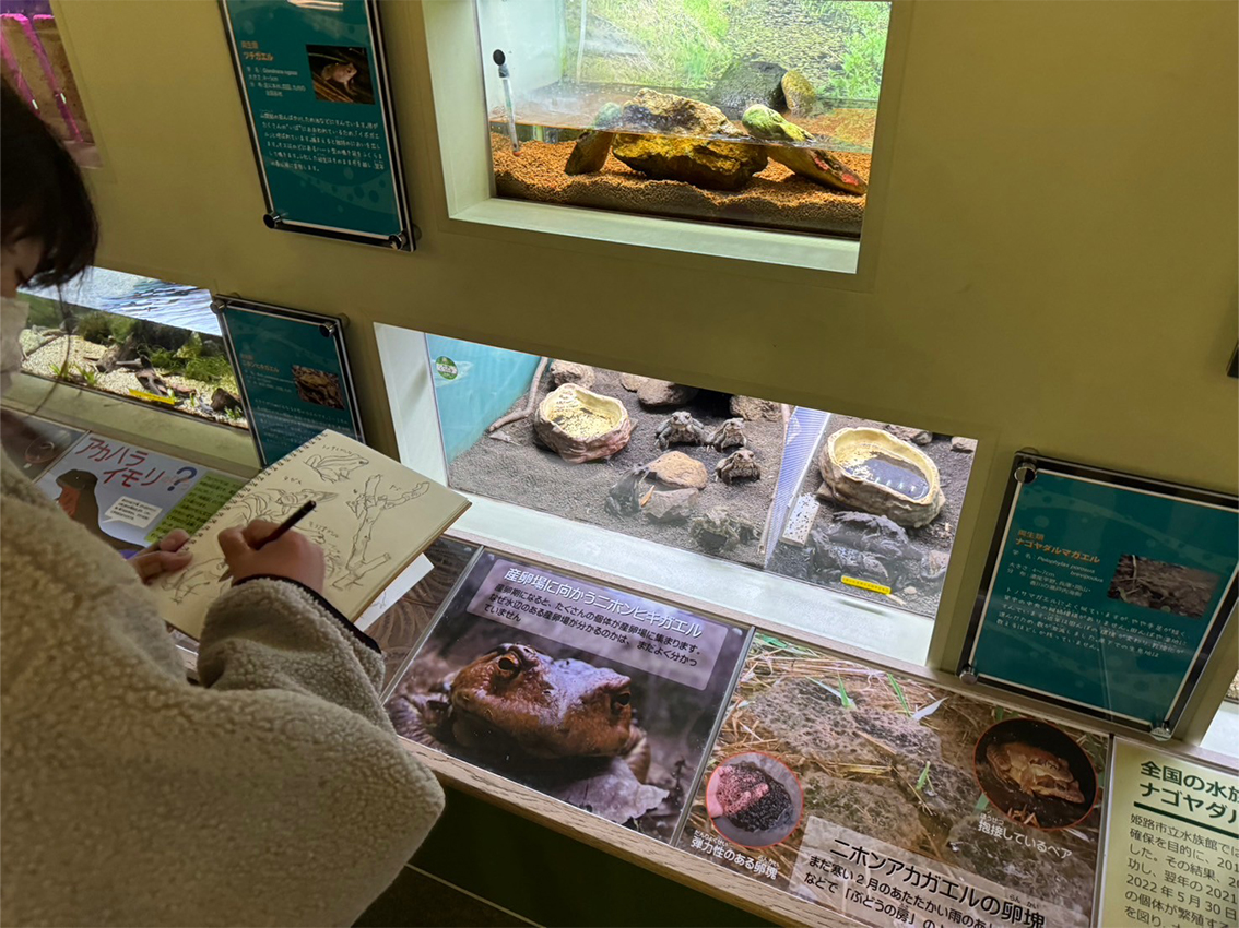 予定を変更して姫路市の水族館にてスケッチを行いました。