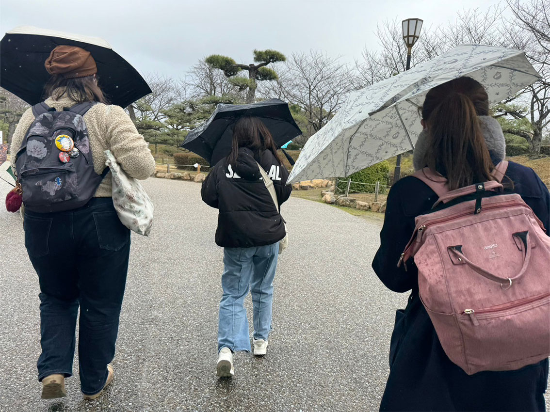 途中で天気が少し回復したので、姫路城に行くグループも。結局また雨が降ってきて...!?