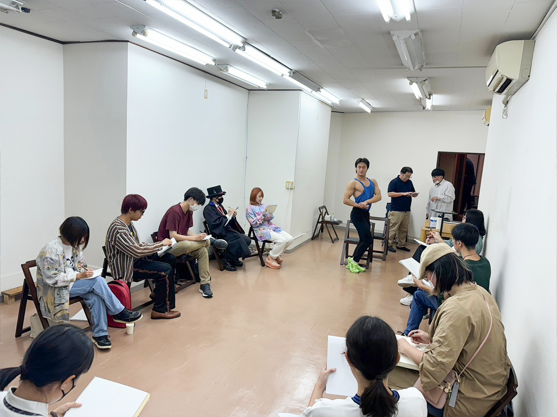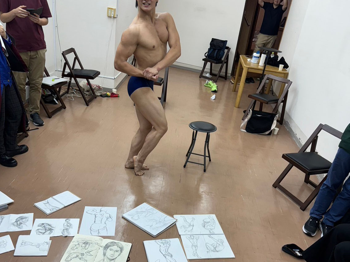クロッキー会はマッチョモデルを起用。モデル本人のテンションも相まって異様な盛り上がりをみせました。