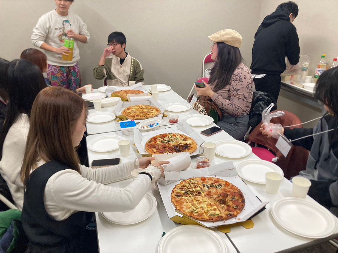 ピザやお菓子を食べながら、みんなで人狼ゲーム。