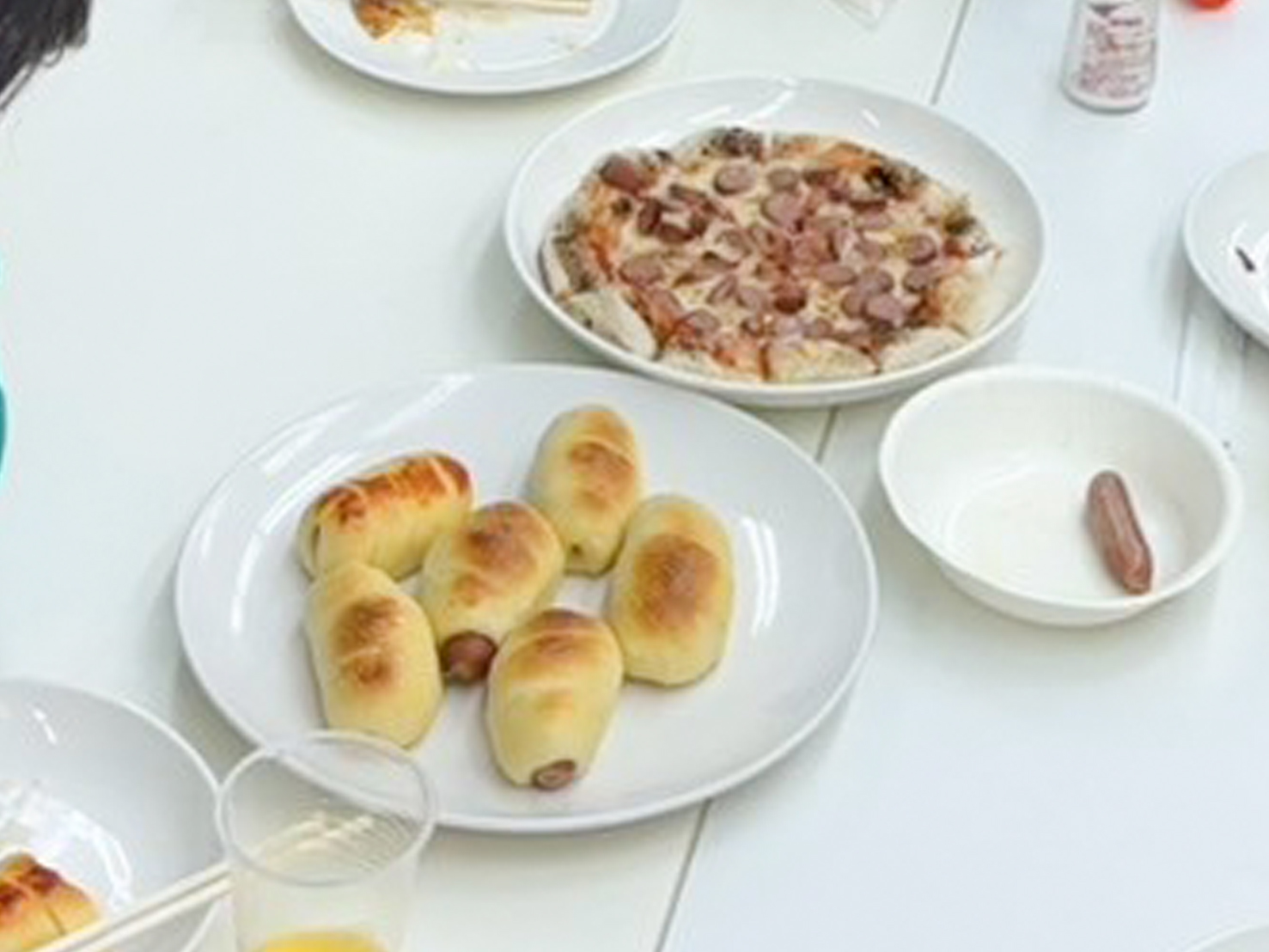 シェフはわざわざこのためにパンの焼き方を勉強してウインナーパンを焼いてみせました。